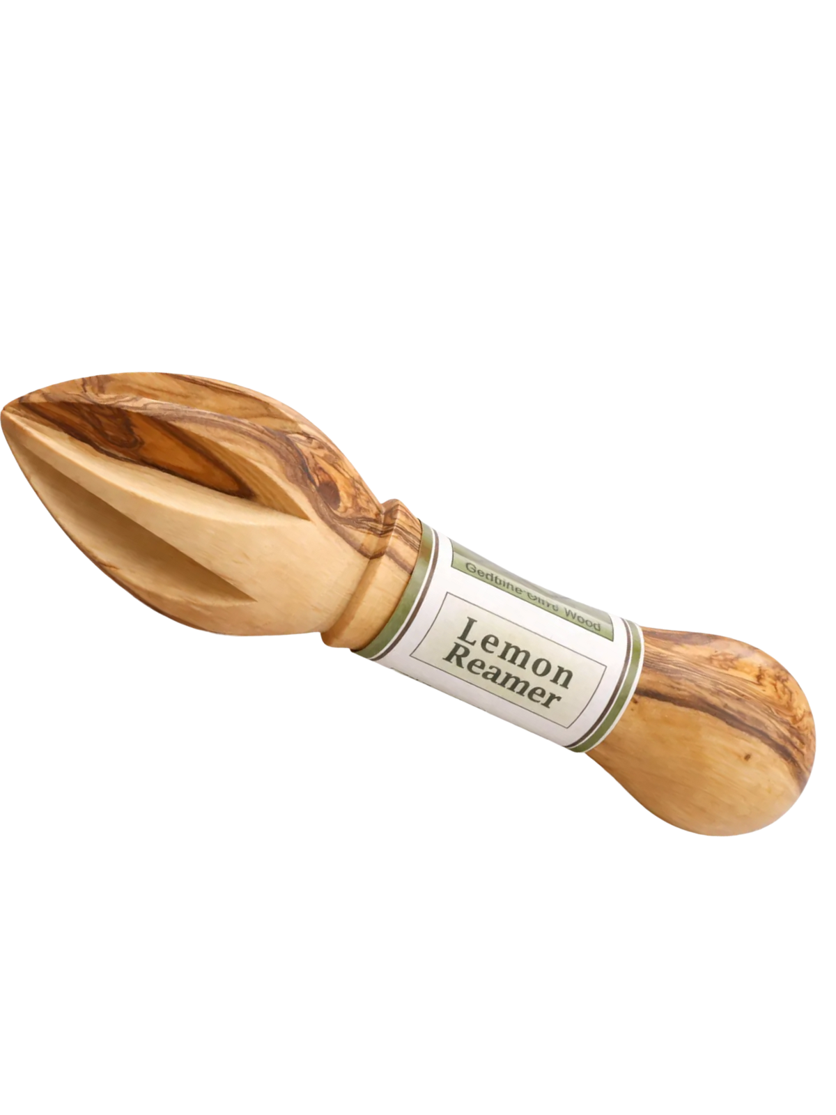 A lemon reamer crafted from genuine olive wood, where natural grain and warm tones make each piece beautifully unique.